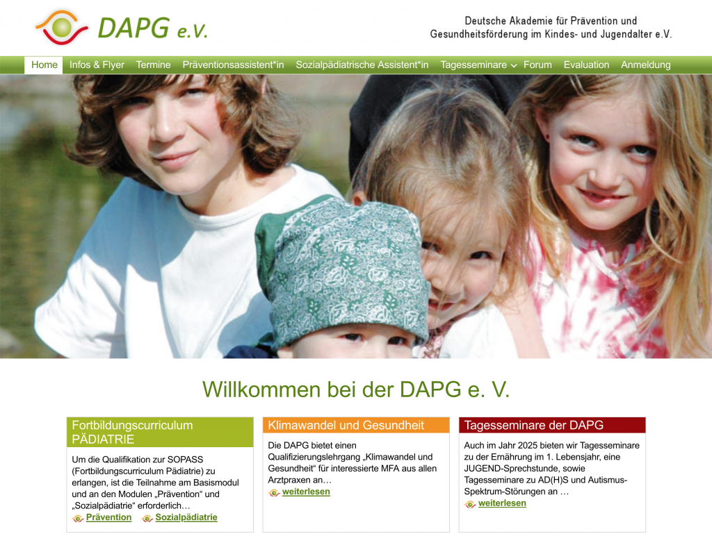Die DAPG wurde 2008 in Bochum als gemeinnütziger Verein mit dem Satzungsziel gegründet, die Prävention und Gesundheitsförderung im Kindes- und Jugendalter zu fördern.