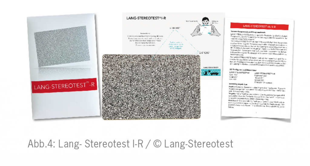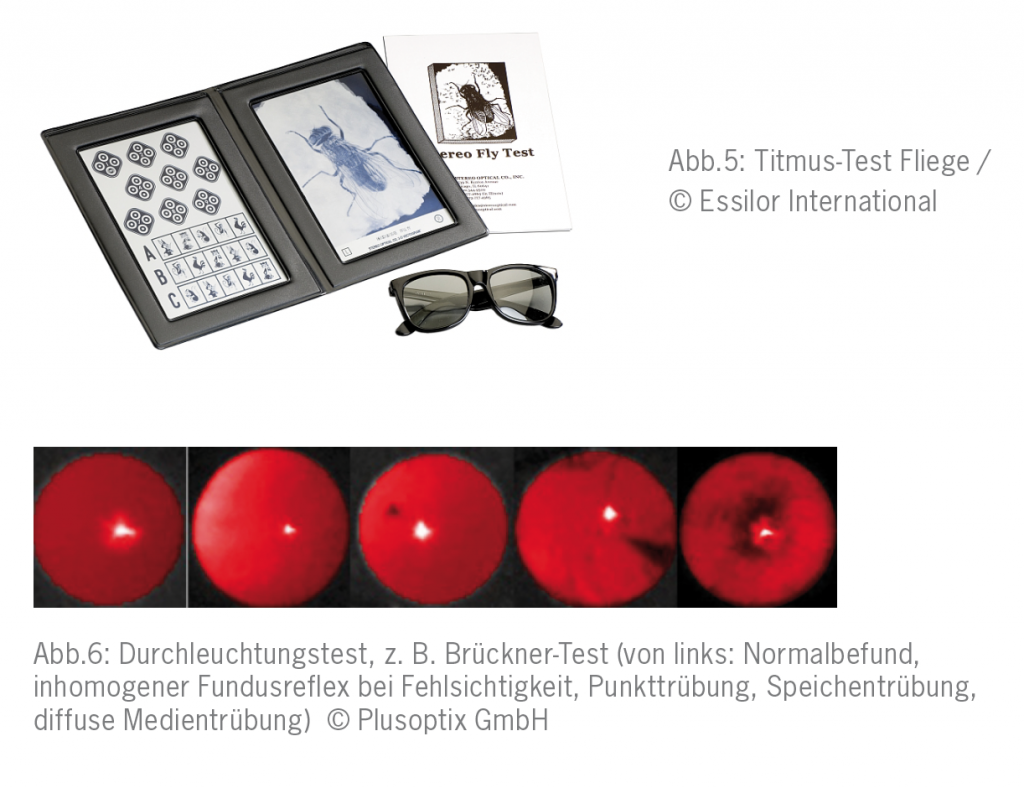 - Überprüfung des Binokularsehens (z. B. Lang-Test)